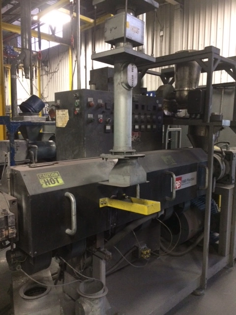 R&B Plastic Machinery 2.25" Extruder, 30:1 LD. 40HP, air cooled, missing a few temp controllers