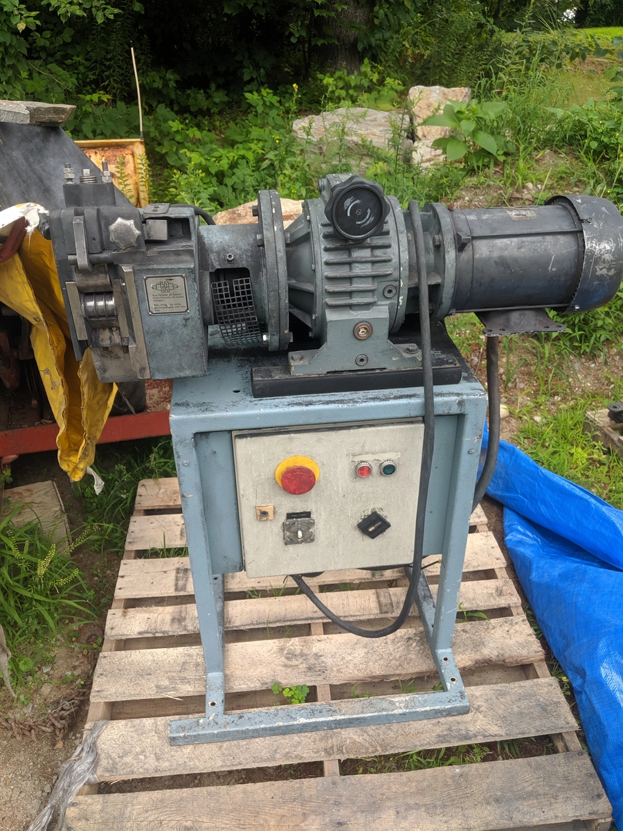 Reiter Automatik 50MM Strand pelletizer on stand. 5HP Dayton motor. 230/460 volt motor, wired 460V