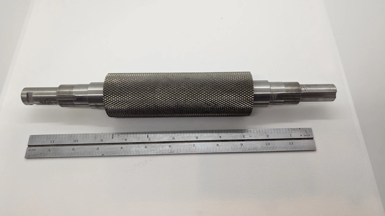 Conair Model 106 pelletizer knurled lower feed roll 17-4PH SS. 12.885" long x 1.875 diameter.