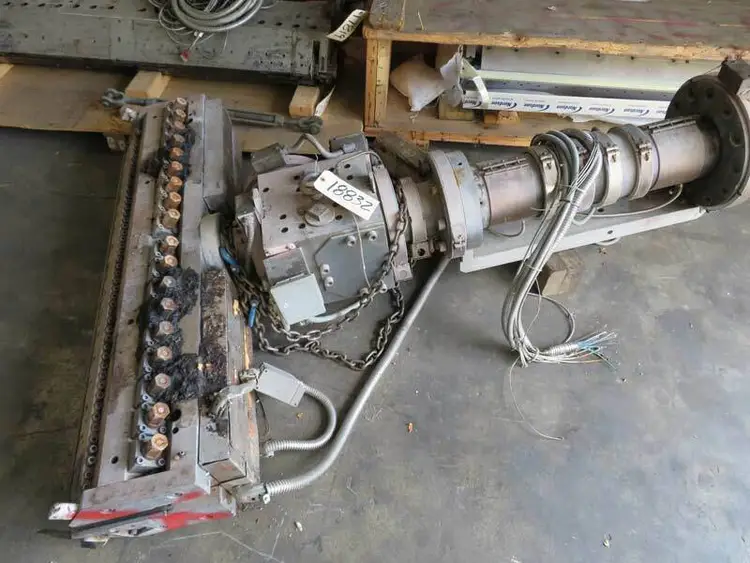 45-degree restrictor bar. .100" flex adjustment. Coat-hanger manifold. With Fast Gap. Extrusion Dies Back center feed. Last ran polypropylene with a 6" 36:1 500 HP Welex extruder. Set up for five (5) zones of temperature control. Deckling provision. Manufactured in 1996. Includes co-ex block