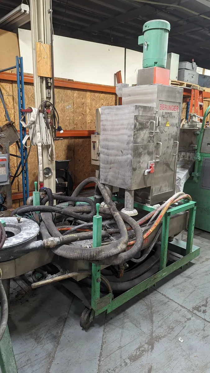 Beringer WRP-35S Pelletizing system, 460/3/60 includes spin dryer, water slurry, pelletizer with brand new 80 hole die and cutter hub/blade holder. Does NOT include a control panel, but we can provide for an additional $5000 or you could build your own.