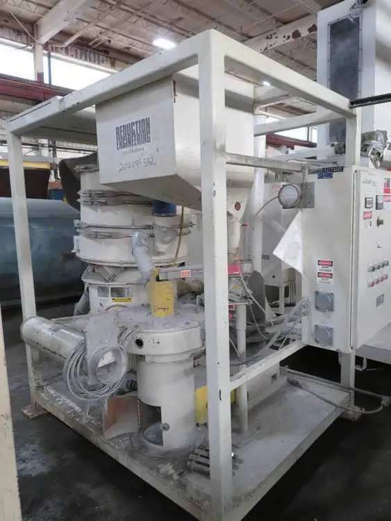 Driven by a 30 HP 230/460-VOLT 3530 RPM motor. Includes Eriez vibratory feed, cyclone with 6" inlet,